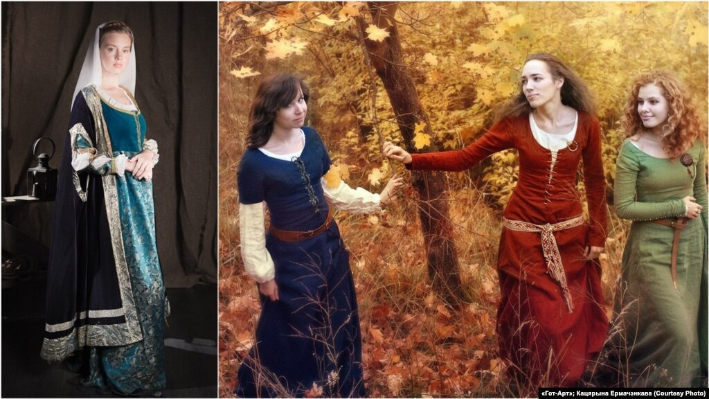 Напрыклад, у не зусім тэматычнай суполцы пад назвай «Гот-Арт» мы знайшлі вось такую сукенку (фота зьлева): ВКЛ, другая палова 16 стагодзьдзя, паўночнанямецкая мода, на суткі 360 тысяч рублёў. Другое фота — строі з прыватнай калекцыі.