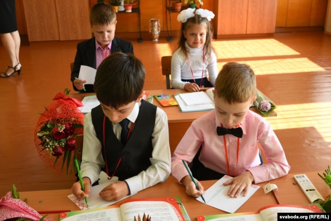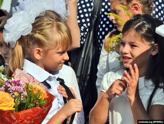 Першаклясьнікі ведаюць, што іх будуць вучыць на беларускай мове. «Мы гэтага не баімся», — заявілі разам яны і дадалі, што будуць і бацькоў вучыць беларускай мове.